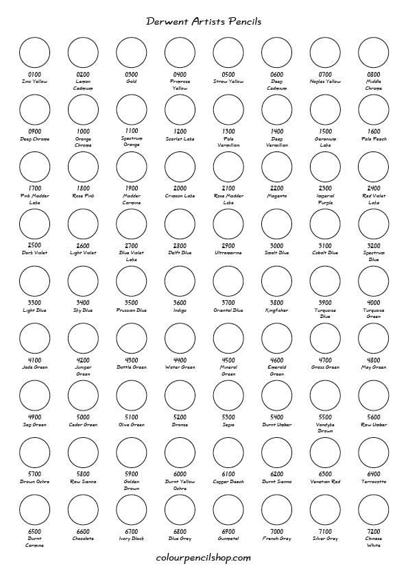Categories: Derwent Artists Pencils, Free Downloadable Colour Charts