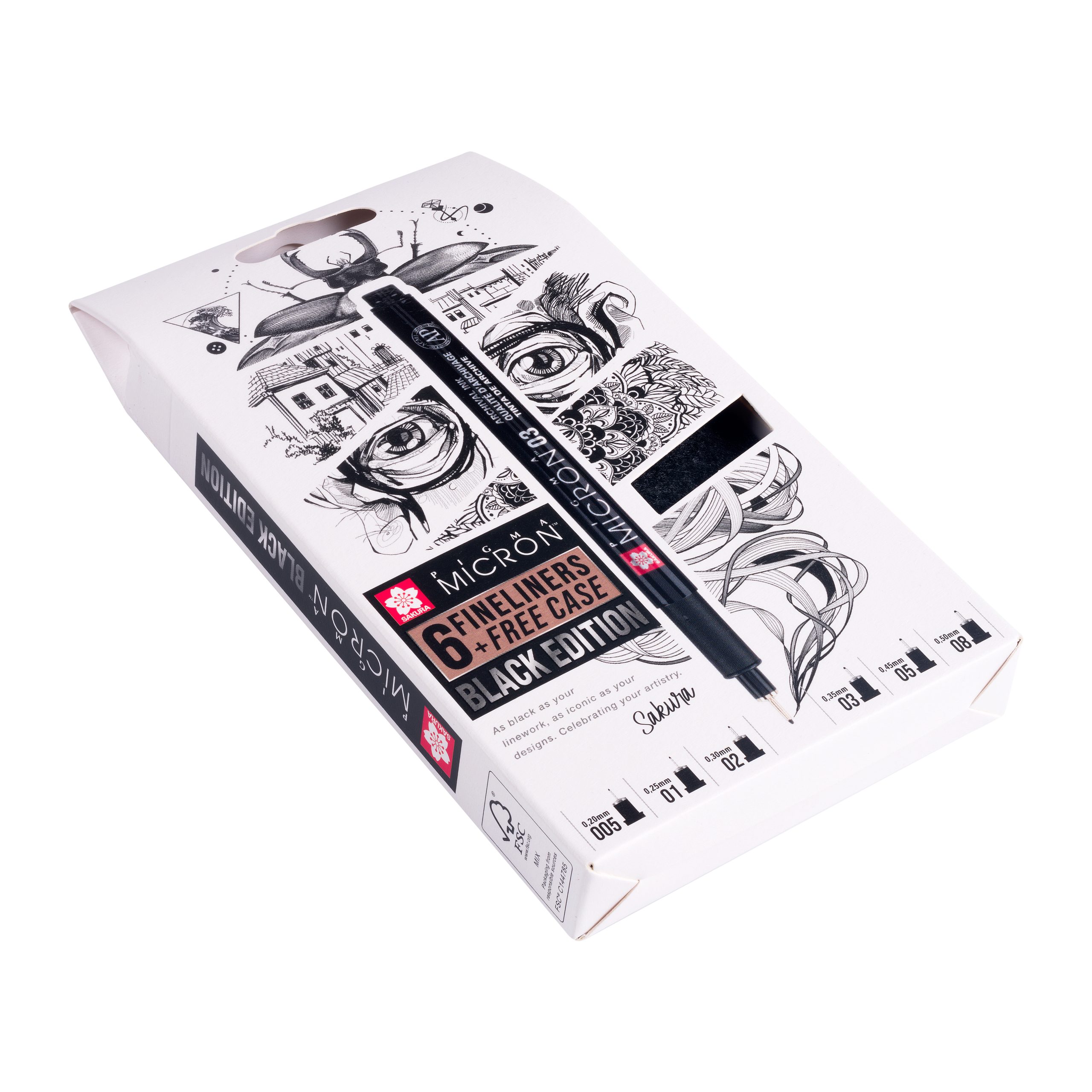 Pigma Micron Black Edition Fineliner Pens – Set of 6 with free case