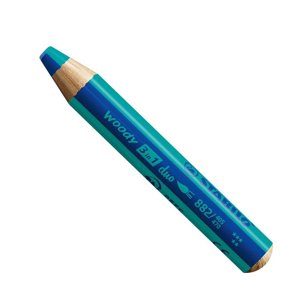 The STABILO woody 3 in 1 duo multi-talent pencil inspires with its two-coloured core. 3 in 1 pencil – colouring, watercolour and wax crayon.